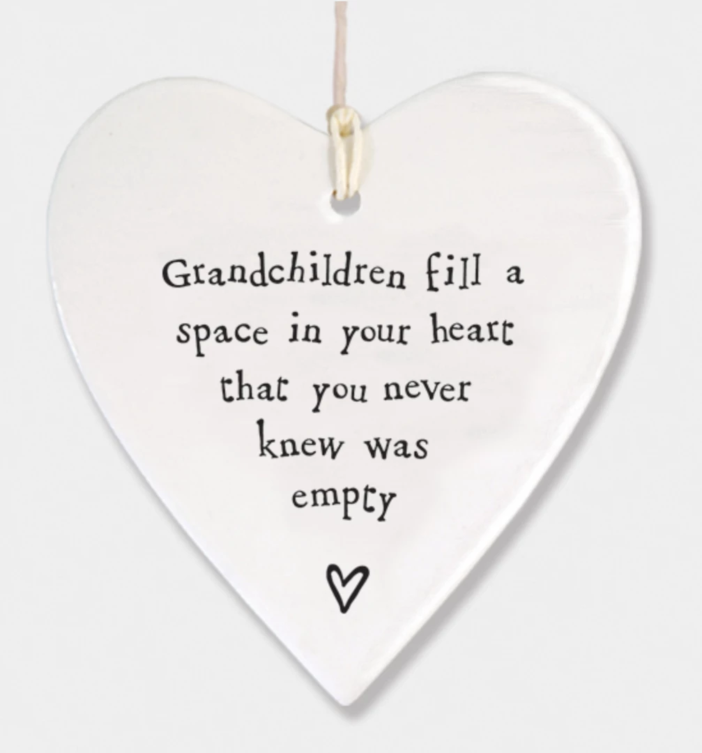 This lovely porcelain heart from East of India has a slightly rippled surface with an embossed message and a white string to hang it up with. Constantly one of our best sellers, these hearts make a perfect gift.