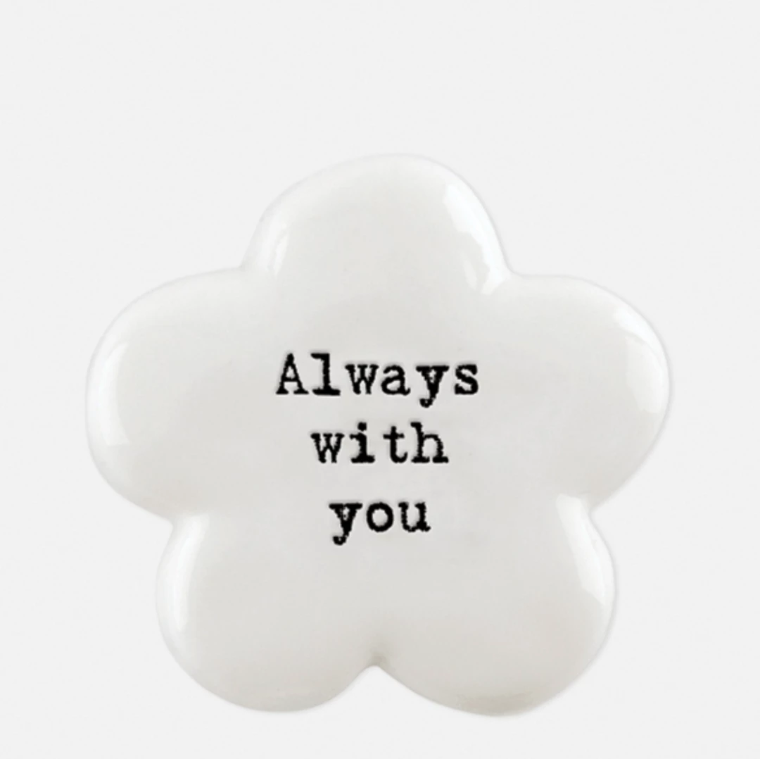 This smooth white porcelain flower token is a lovely little sentiment gift to send to someone to show you are thinking of them.