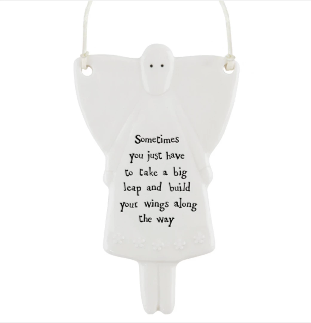 This lovely porcelain hanging sign from East of India has a slightly rippled surface with an embossed message and a white string to hang it up with. Constantly one of our best sellers, these signs make a perfect gift.