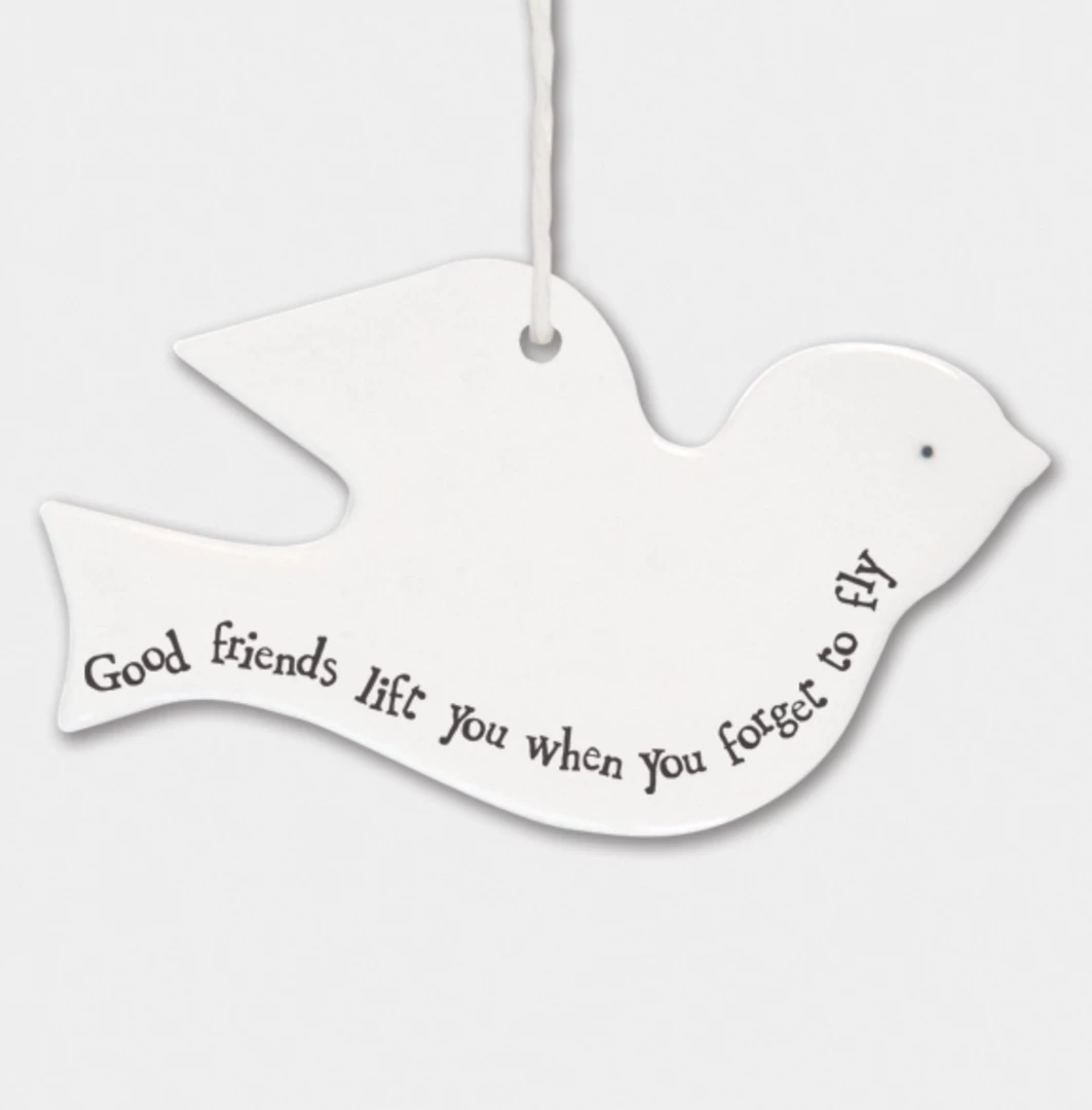 This lovely porcelain hanging sign from East of India has a slightly rippled surface with an embossed message and a white string to hang it up with. Constantly one of our best sellers, these signs make a perfect gift.