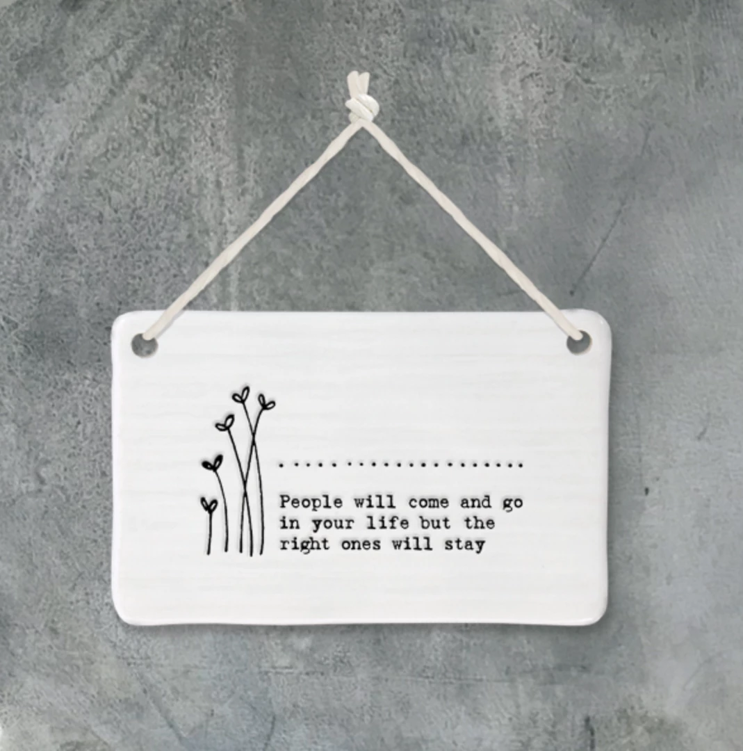 This lovely porcelain hanging sign from East of India has a slightly rippled surface with an embossed message and a white string to hang it up with. Constantly one of our best sellers, these signs make a perfect gift.