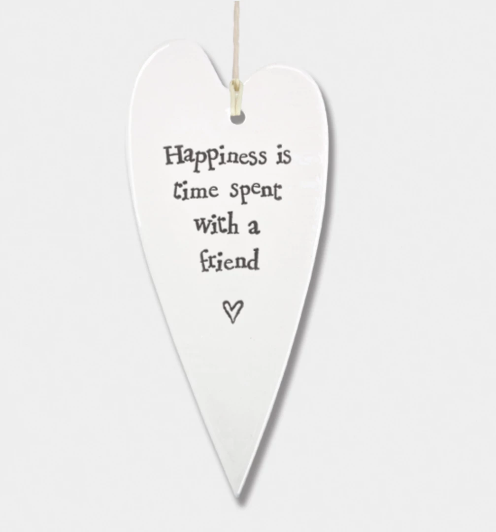 This lovely porcelain heart from East of India has a slightly rippled surface with an embossed message and a white string to hang it up with. Constantly one of our best sellers, these hearts make a perfect gift.