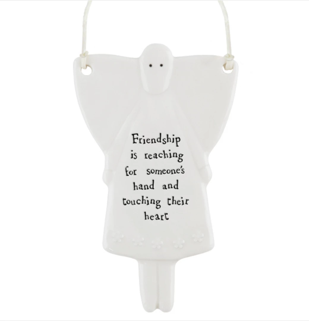 This lovely porcelain hanging sign from East of India has a slightly rippled surface with an embossed message and a white string to hang it up with. Constantly one of our best sellers, these signs make a perfect gift.
