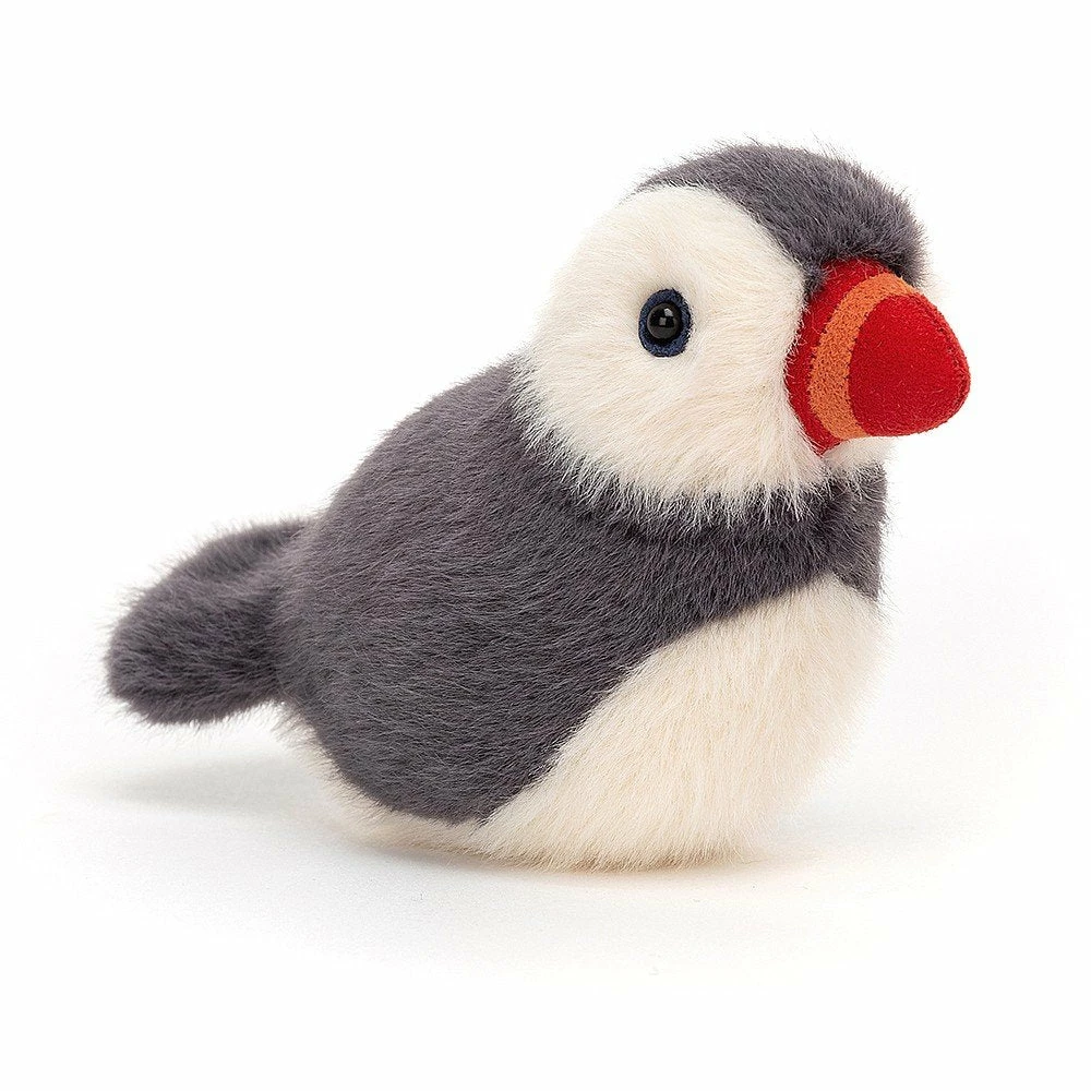 Birdling Puffin might look restful, but this little rascal is dreaming of fish! A podgy poppet in pebble and cream with a tufty tail and red suedey bill, this seabird is perfectly poised. Puffins love nothing more than to soar, then splash in the sea and emerge with dinner!