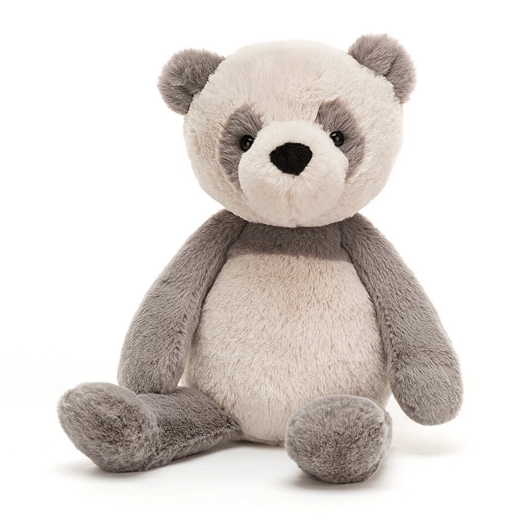 Buckley Panda just can’t stop yawning! Dreamy-soft in cream and grey fur, this roly-poly panda is so sweetly sleepy! With big squashy paws and foldy ears, Buckley’s a baby’s best bedtime bear.