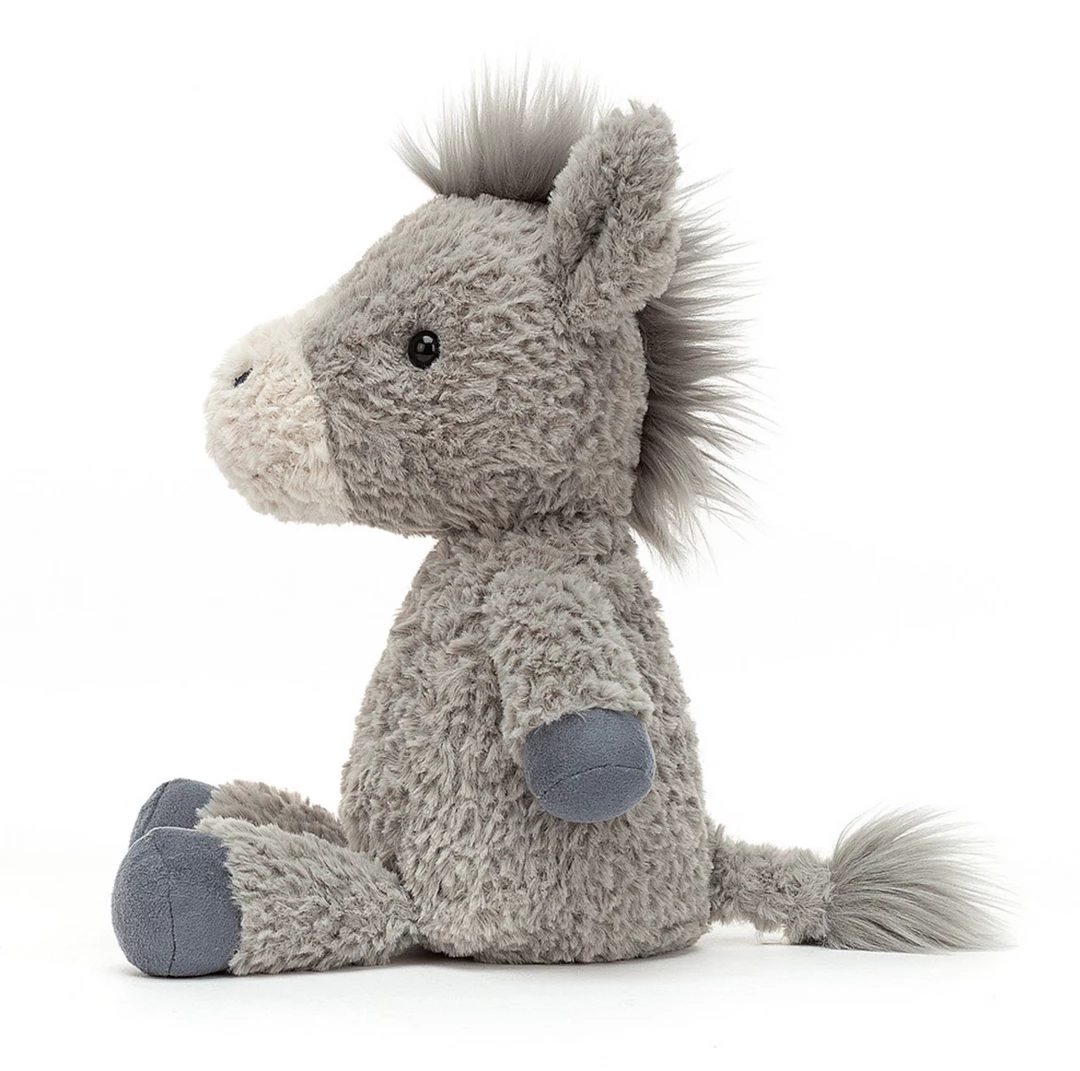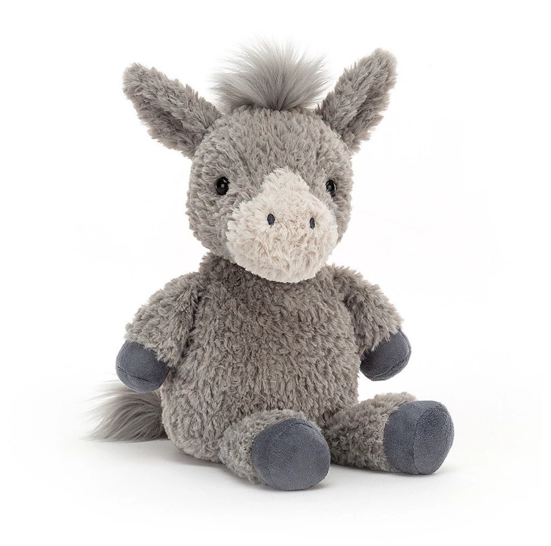 Flossie Donkey is splendidly squat, with such waggly pebbly ears! Tufty and tickly, this two-tone cutie has scrumbly fur, a creamy muzzle and squishy-squash suedey hooves! Silky-maned and tufty-tailed, Flossie Donkey’s so hee-haw happy!