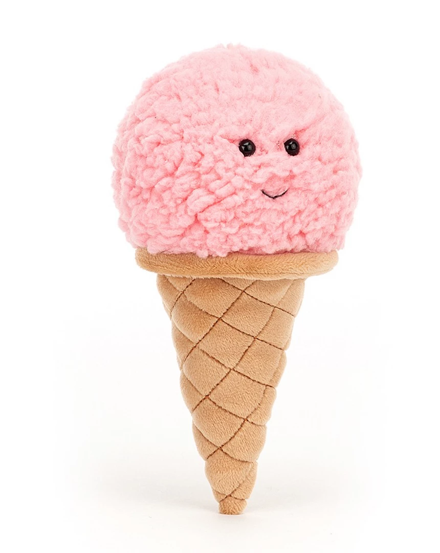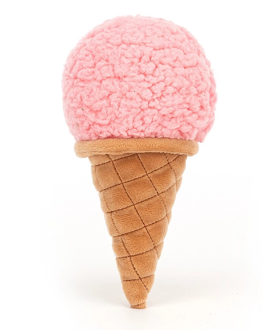 Irresistible Ice Cream Strawberry is a candy-pink pal with a summery outlook. A scruffly scoop of yummy softness with a squidgy, stitchy wafer cone, this sorbet silly summons the sunshine!