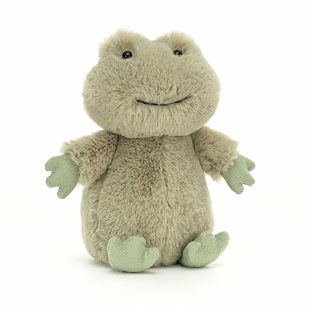Nippit Frog isn’t really one for leaping about – it’s much more pleasant to snuggle on a lily pad or in someone’s pocket. In mossy-minty green, with suedey, squeezable hands and feet, this amiable amphibian makes a great companion!