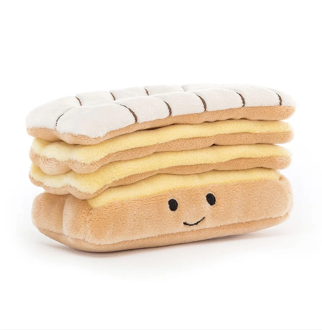 Why have one hat when you can wear four? Pretty Patisserie Mille Feuille is a stretchy softy with layers of pastry and vanilla custard! This cute little cake has a chunky base and fancy feathered icing on top – perfect for modelling in the bakery window!