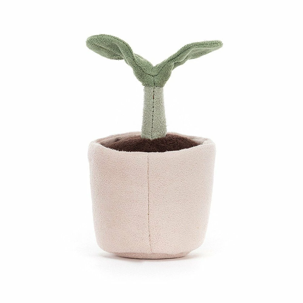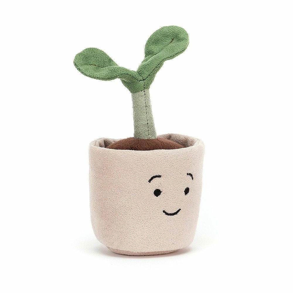 A cheery chum in a neat suedey pot – it’s Silly Seedling Happy! This perky plant has waggly green leaves, squishy soil and a stitchy smile. The perfect present for busy friends who want to brighten up their workspace. Everyone needs a supportive bud!
