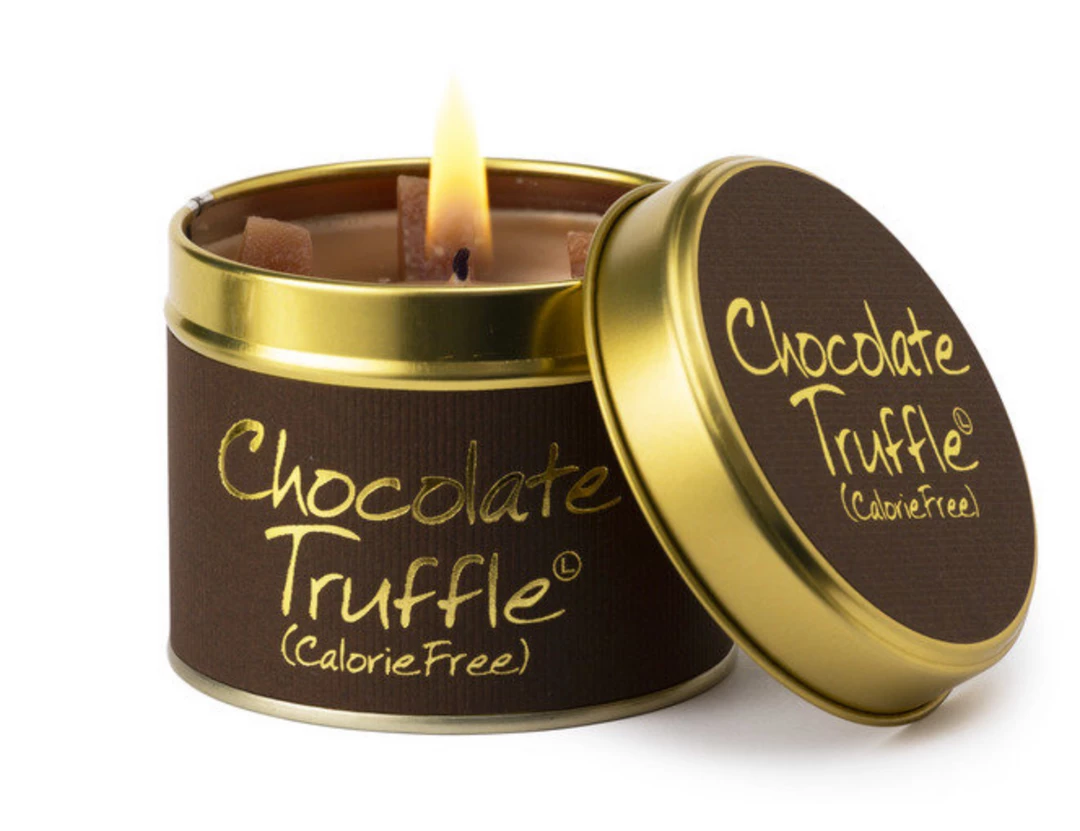 Chocolate Truffle; Calorie Free! Super rich, luxurious Belgian chocolate. Go on – Give into it! Burn Time 35 hours. Dimensions 7.7 x 6.6cm
