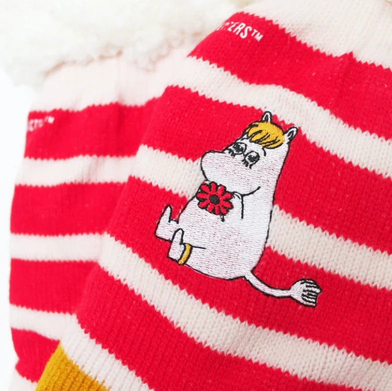 These super comforting slipper socks feature Snorkmaiden embroidered on the side and a thick red stripe pattern. Complete with a fleecy lining for extra comfort and anti-slip dots. Ideal for a cosy night in.