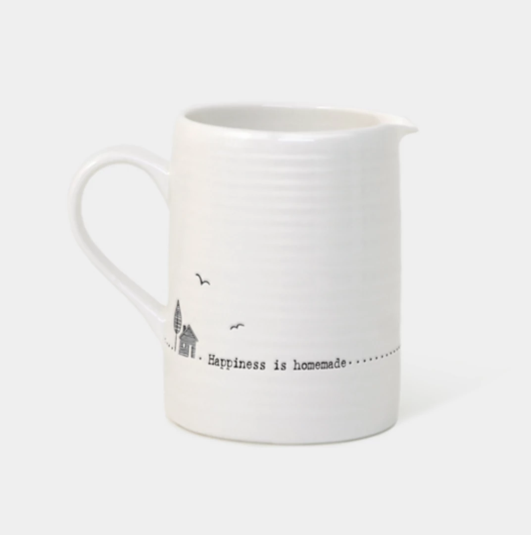 This white porcelain jug with a slightly rippled surface is perfect for milk or just to admire! With the words “Happiness is homemade” and house and tree decoration it comes in a lovely rustic brown box ready to give as a gift.