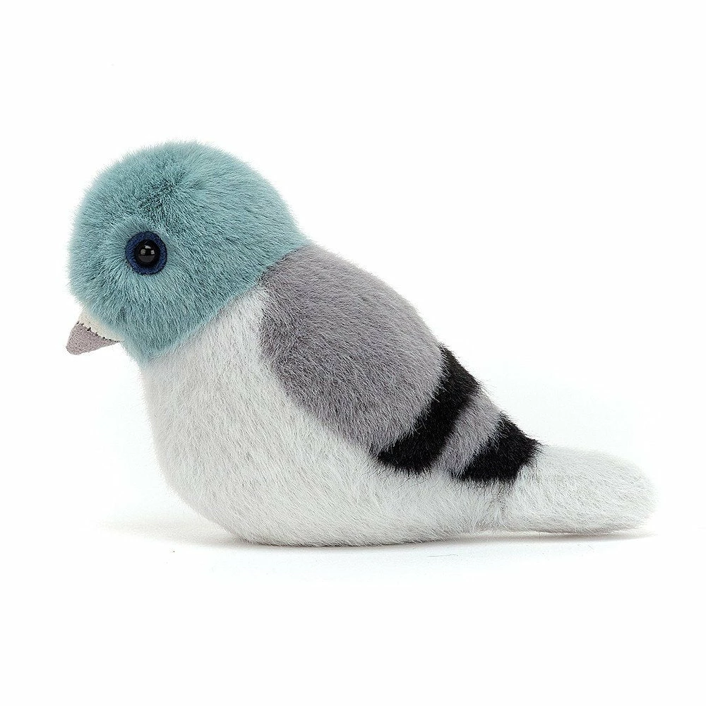 Birdling Pigeon is the smart and thoughtful type. There’s a lot of wisdom in that powder-blue bonce! With a suedey beak, slate-grey wings, and a sweet subtle highlight round the eye, this small city bird is uncommonly handsome – and an expert forager to boot! A lively puffball of a pidge!