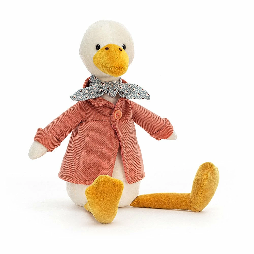 Rosalie Goose is all set up for country living. Dressed for a stroll across hills and meadows, in dapper blue neckerchief and buttoned-up cordy coat, she’s a picture of elegance – the goose with the golden legs! The best-dressed goose on the green!