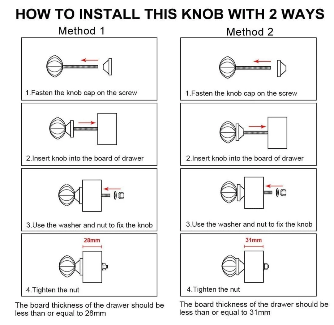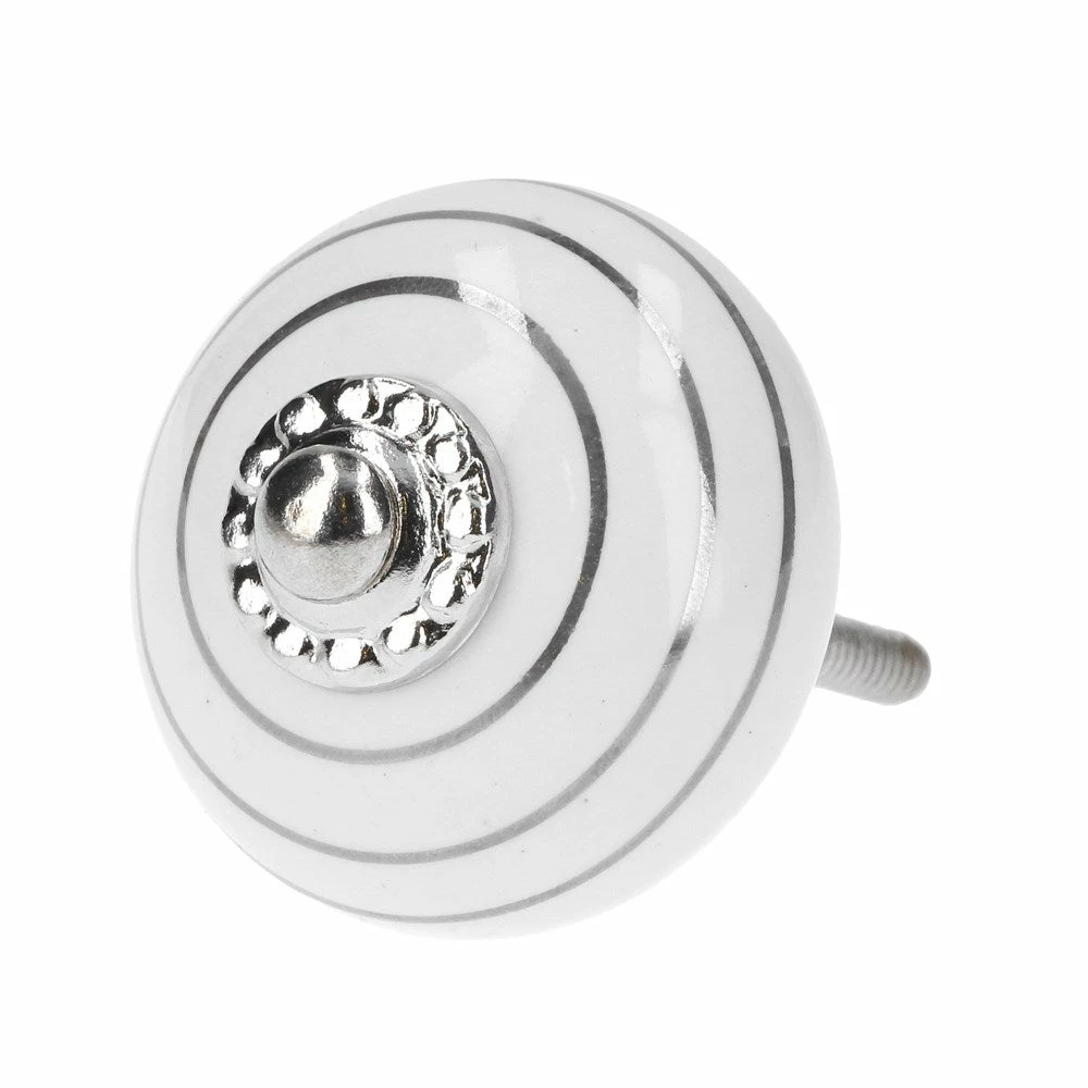 Perfect for updating drawers or wardrobes, this ceramic knob has a silver coloured metal backplate, 1 washers and 1 nut. The screw is 3 cm long and the thread diameter is 4mm and is very easy to fit. Standard screw fits doors up to 27mm