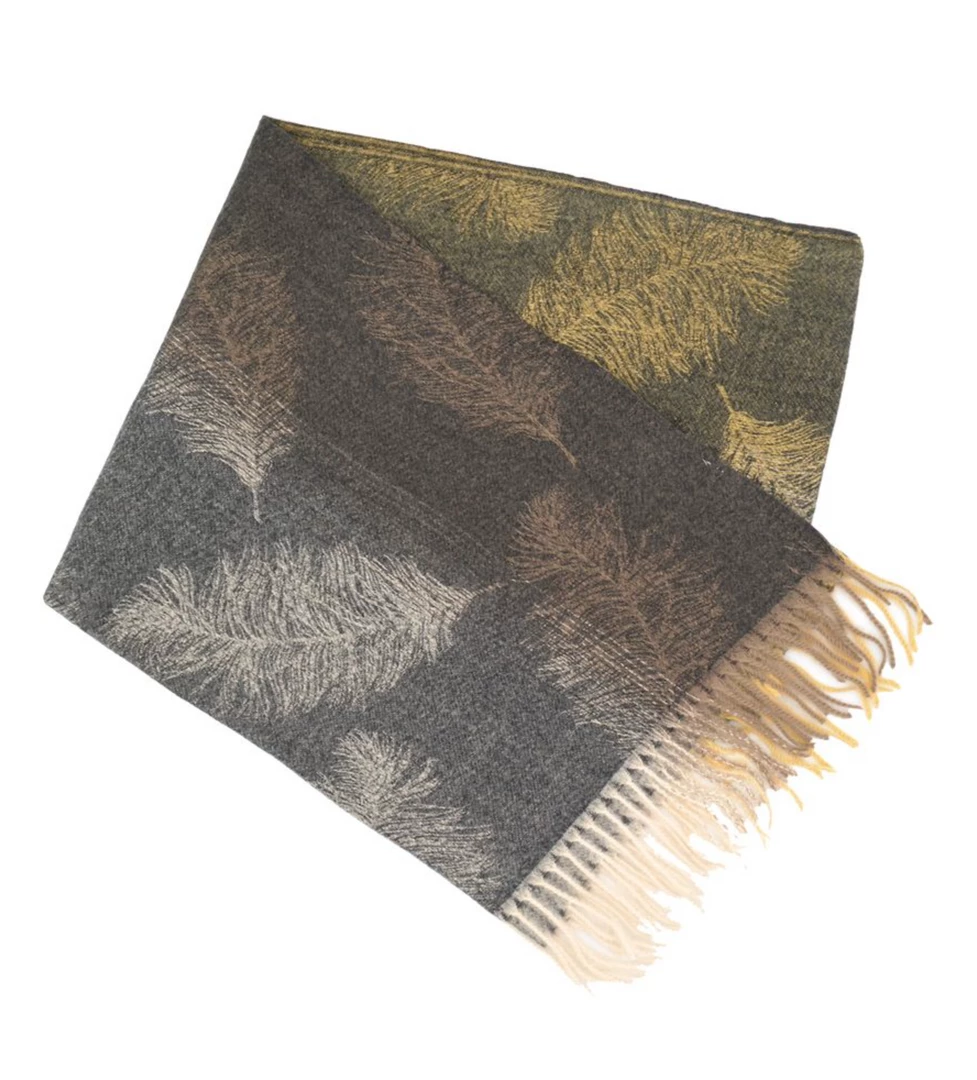 A warm winter knit scarf with a feather motif…..warm and cosy….
