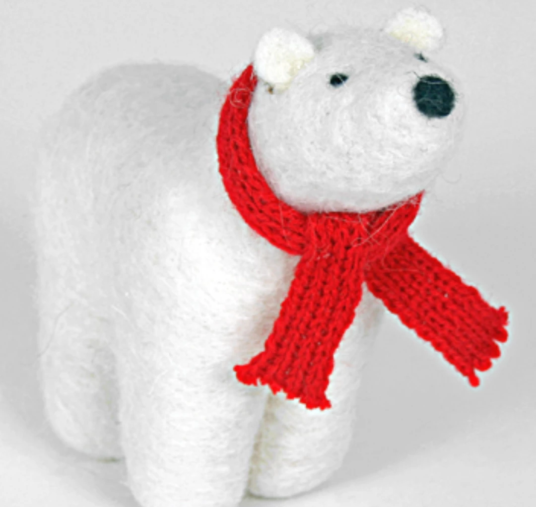 Father Polar Bear with his red scarf is ready for Christmas! This felted decoration is hand made and biodegradable. No plastic here!