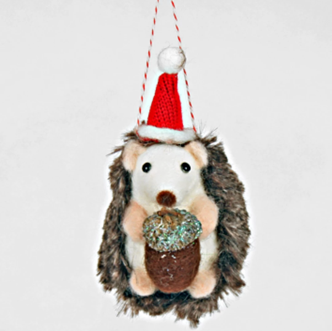 The cutest hedgehog in a Santa Hat with his acorn is ready to adorn your Christmas Tree! This felted decoration is hand made and biodegradable. No plastic here!