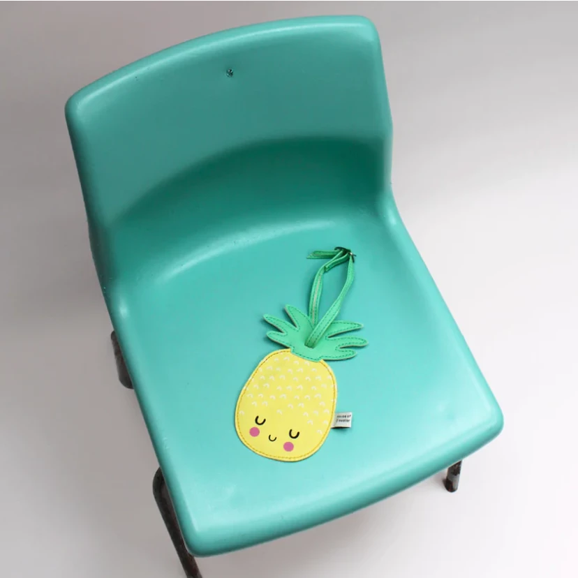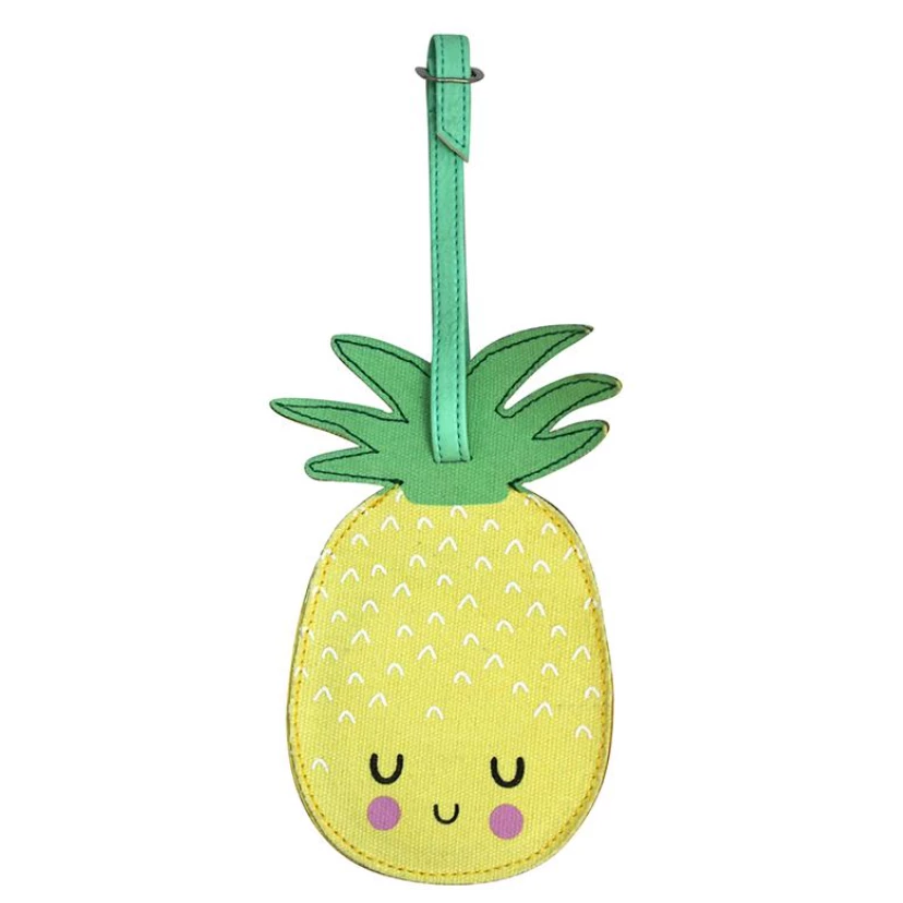 Cute yellow Kawaii Pineapple luggage tag. Get into the holiday mood with this funky tag for your suitcase!