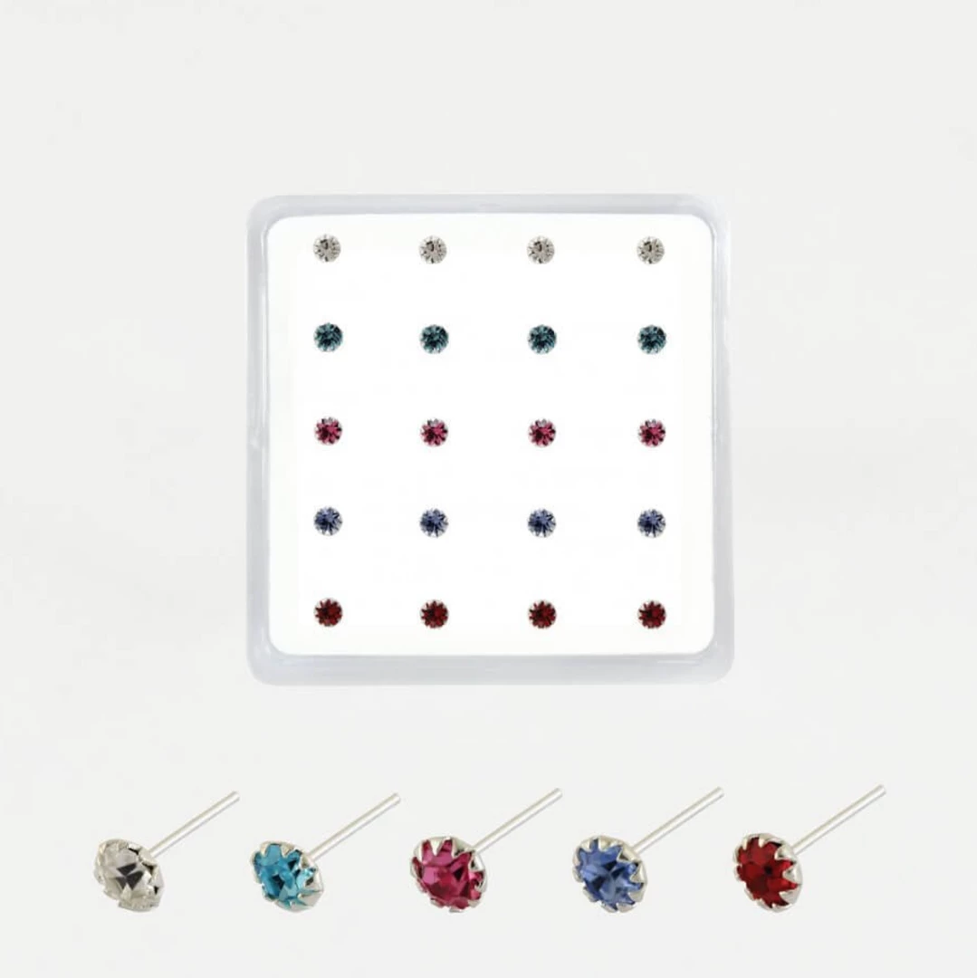 Sterling Silver 2mm gemset round nose pins, with a straight back
