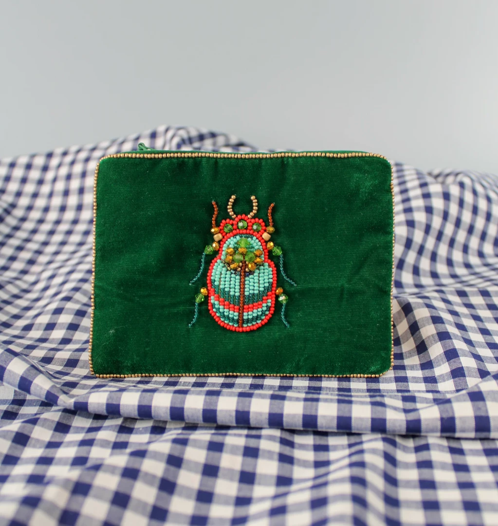 This striking Forest green beetle coin purse. In stunning shade of mint, teal and fiery red. This luxury velvet coin purse is the perfect size to fit in your handbag.