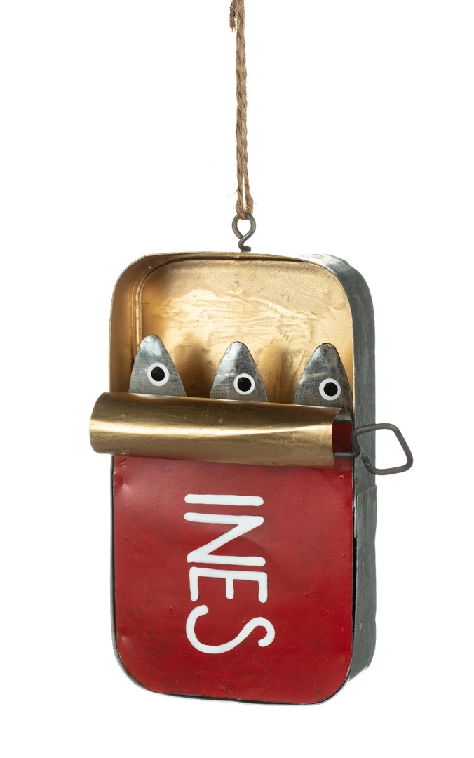 This quirky tin of sardines is made from metal and has three cheeky sardines peeking out of their tin!