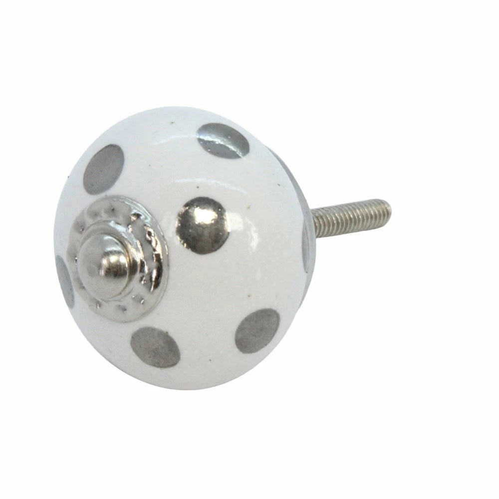 Perfect for updating drawers or wardrobes, this ceramic knob has a silver coloured metal backplate, 1 washers and 1 nut. The screw is 3 cm long and the thread diameter is 4mm and is very easy to fit. Standard screw fits doors up to 27mm