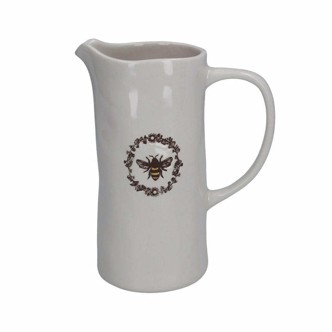 This Gisela Graham large ceramic jug has a slightly rippled surface with an embossed print of a honey bee with a circle of flowers and foliage. Perfect for displaying flowers or using for water or drinks. Roll on the summer!