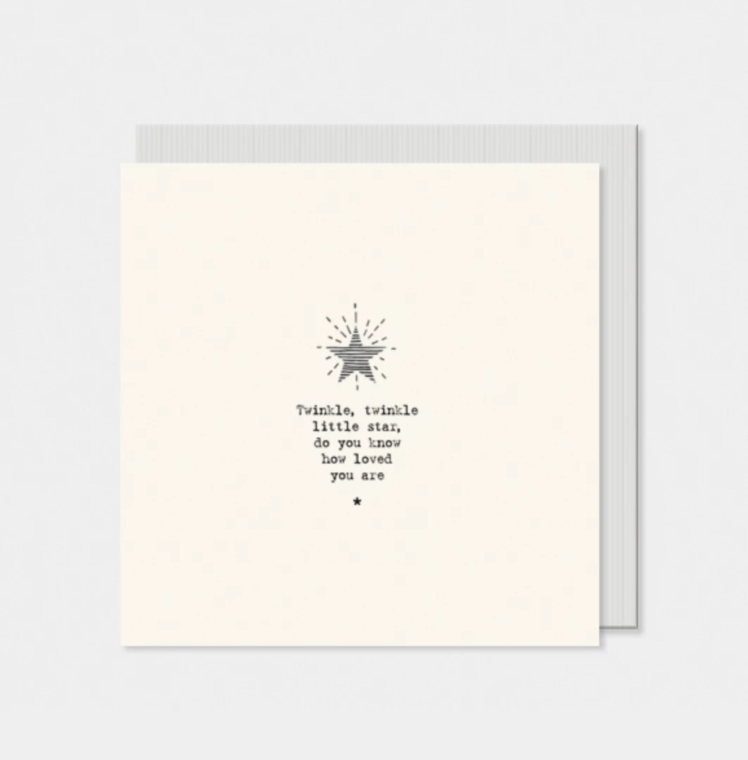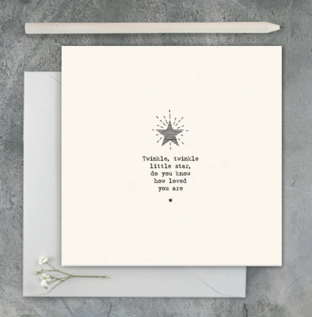 Sweet little card with the words Twinkle Twinkle Little Star, Do you know how loved you are? Blank inside