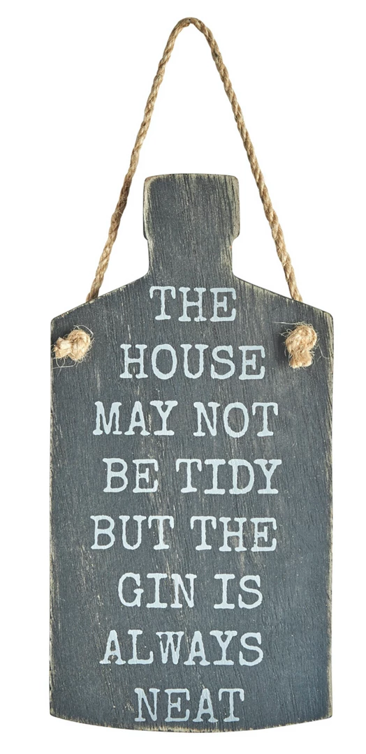 Features the slogan: “The House May Not Be Tidy But The Gin Is Always Neat”