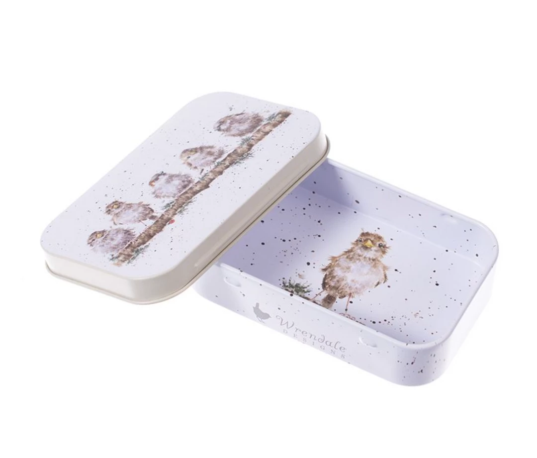 Perfect for storing trinkets, pills or anything small, this mini tin features an adorable sparrow design.
