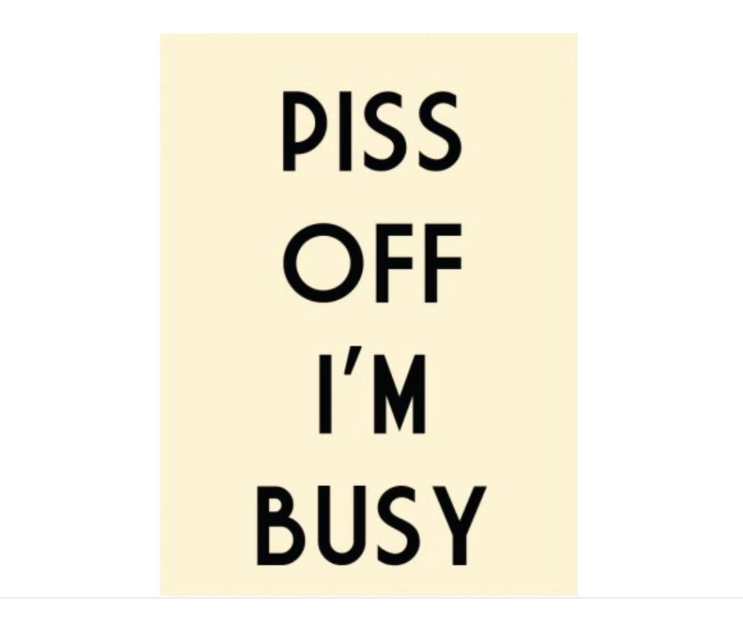 A humorous metal sign with a bold scripted ‘Piss Off I”m Busy’ text. Has four holes in the corners so can be screwed to the wall or you can pop a string through to hang it up.