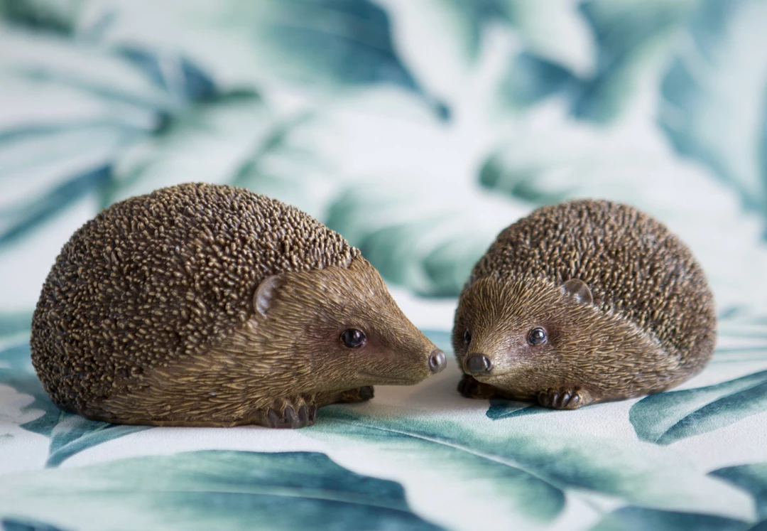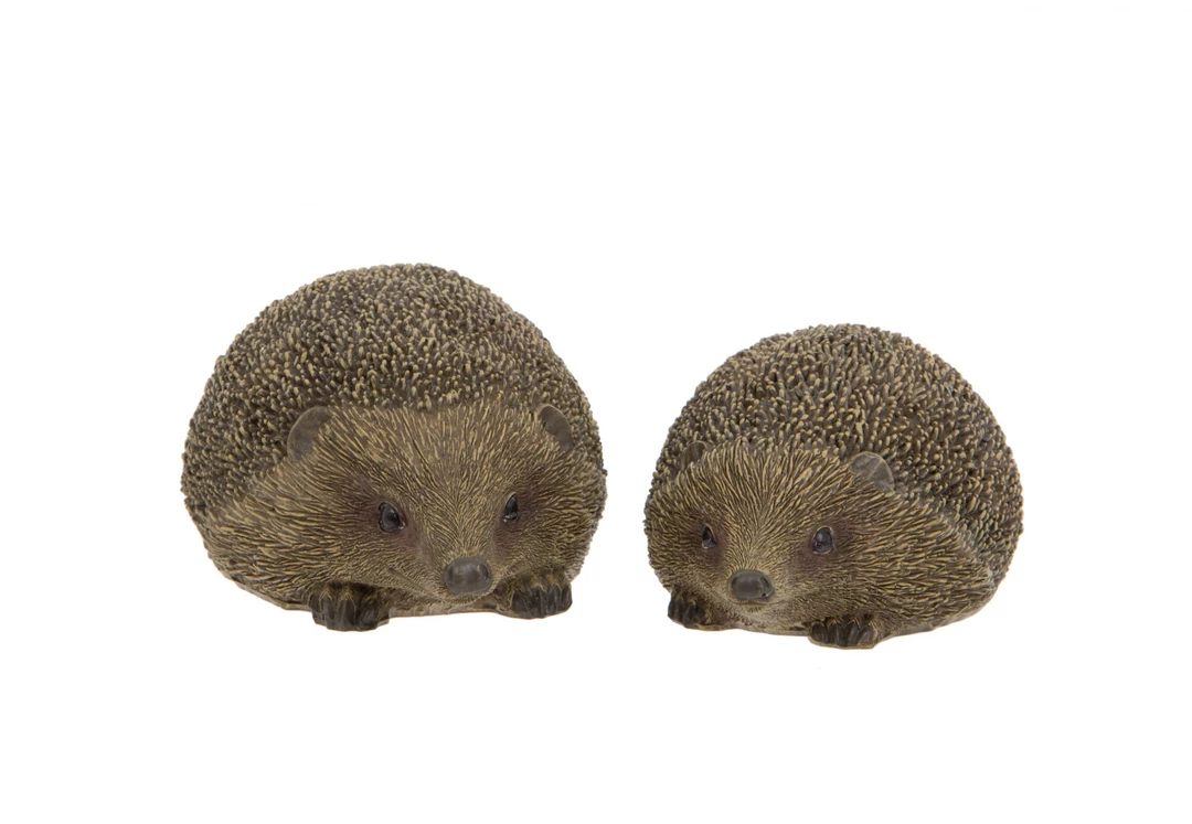 Fabulously realistic set of two cute hedgehogs. Have your own little hogs in your garden or home!