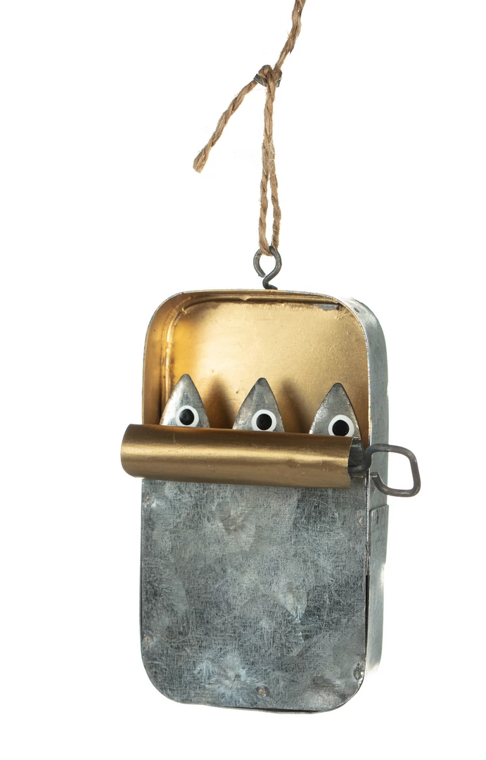 This quirky tin of sardines is made from metal and has three cheeky sardines peeking out of their tin!