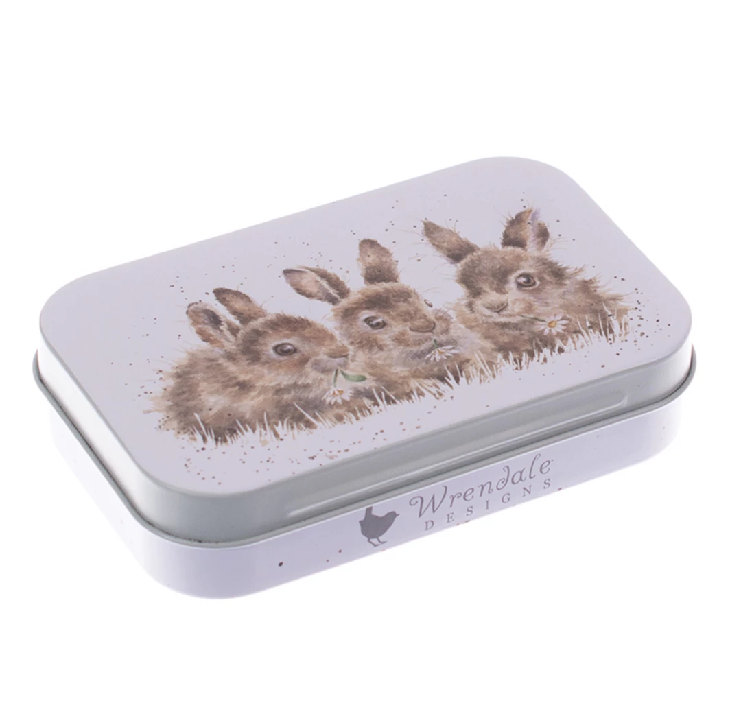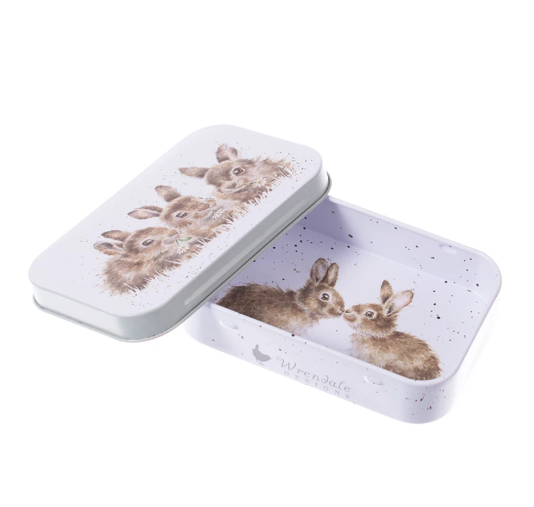 Perfect for storing trinkets, pills or anything small, this mini tin features an adorable bunny rabbit design.